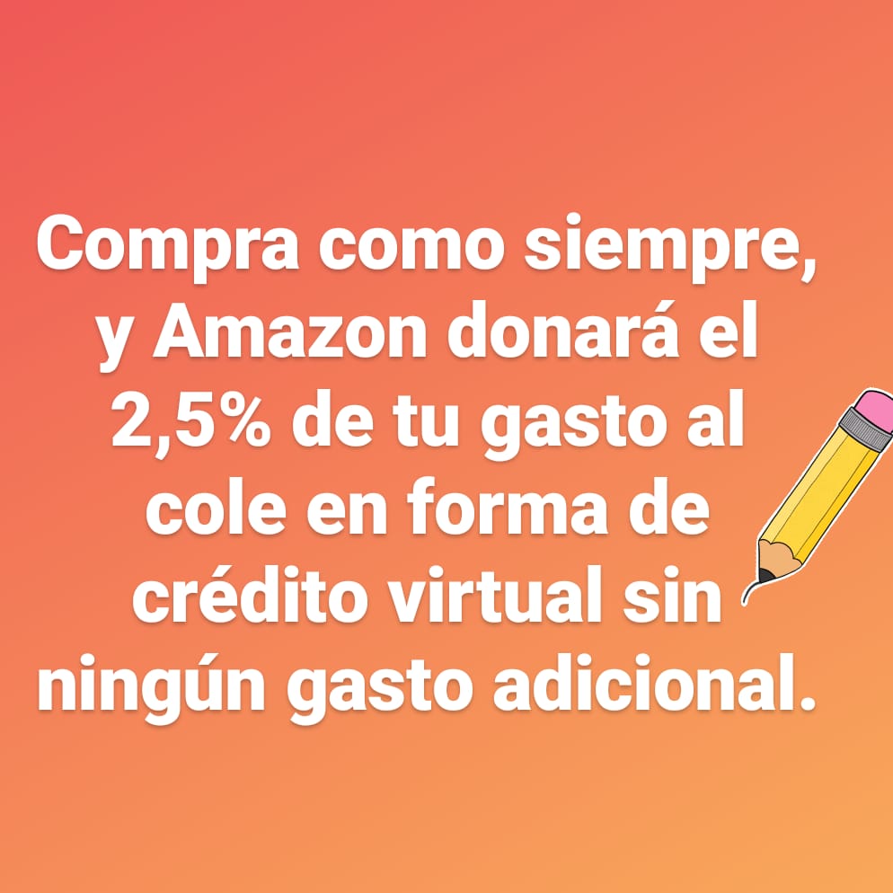 3.-Realiza Compras Elegibles en Amazon.es para que Amazon ponga a disposición del Centro Educativo que has seleccionado un porcentaje (2,5%) del valor de cada Compra Elegible en forma de crédito virtual. Este proceso es totalmente gratuito para las familias.